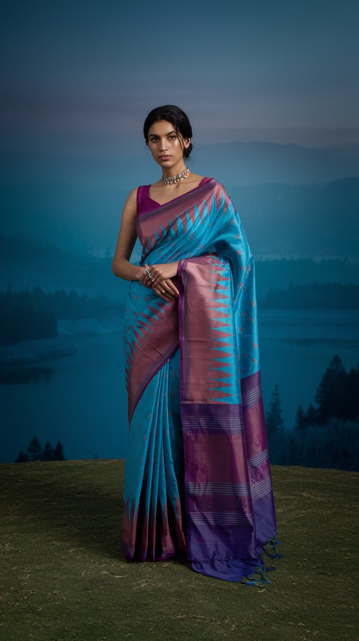 Sambalpuri Blue Body Saree – Bandha Design with Red Bandha Border and Pallu